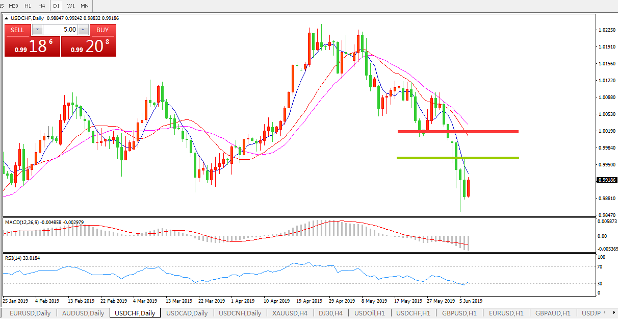 美元兑瑞郎USDCHF 日线图: