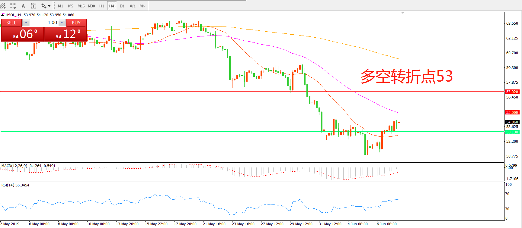 交易策略:在53.00之上看涨,目标55.00    57.00
