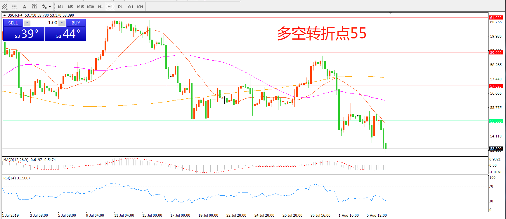 多空转折点:55.00