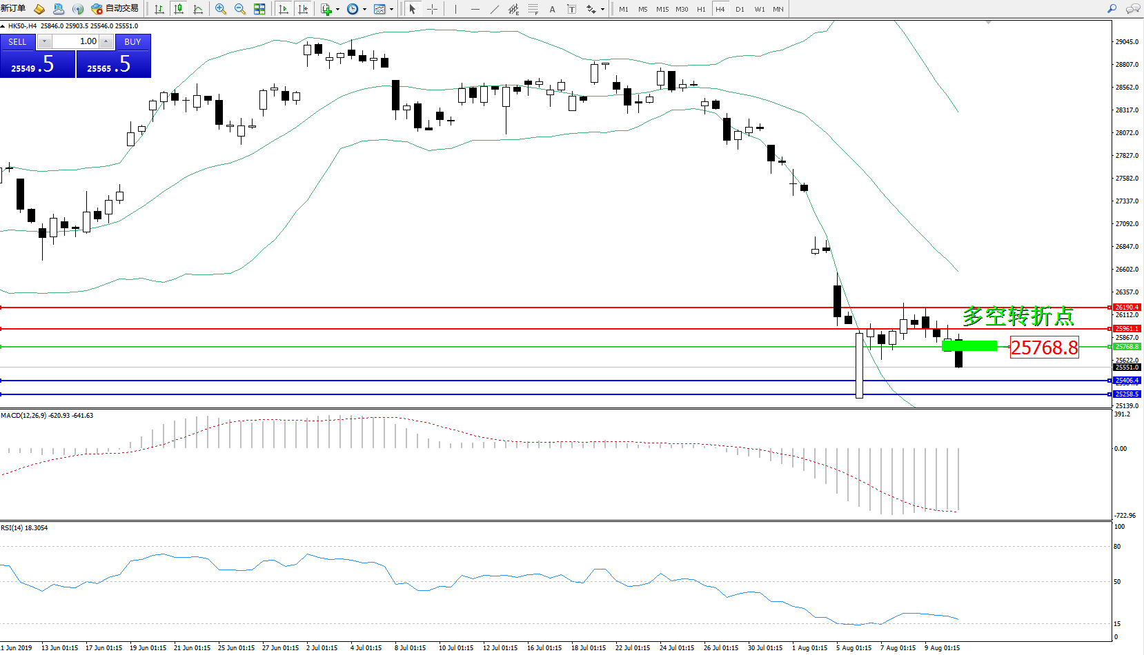 恒指HK50 ——4小时K线图显示: