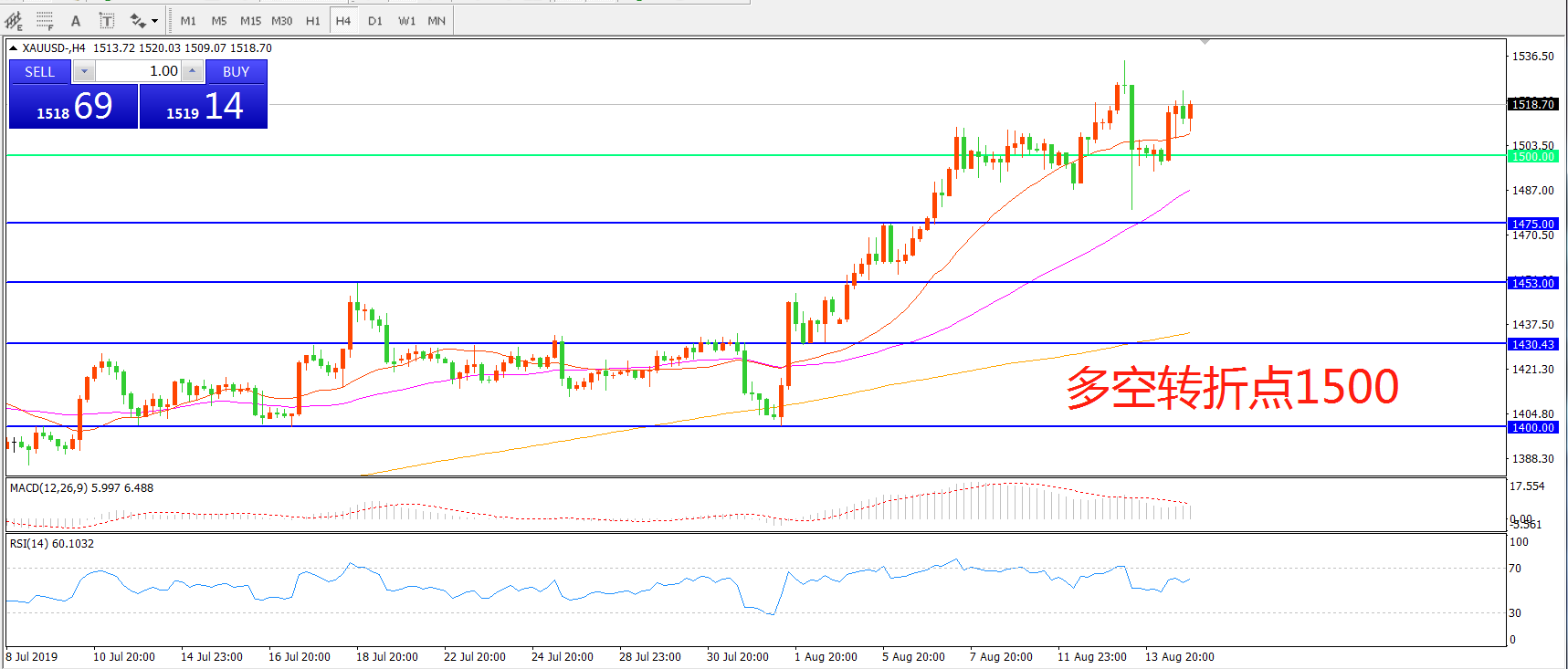 多空转折点:1500.00