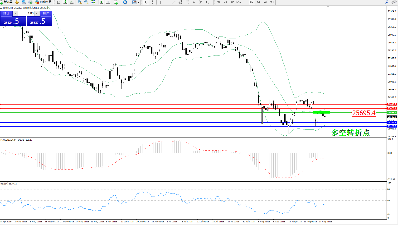 恒指HK50 ——4小时K线图显示: