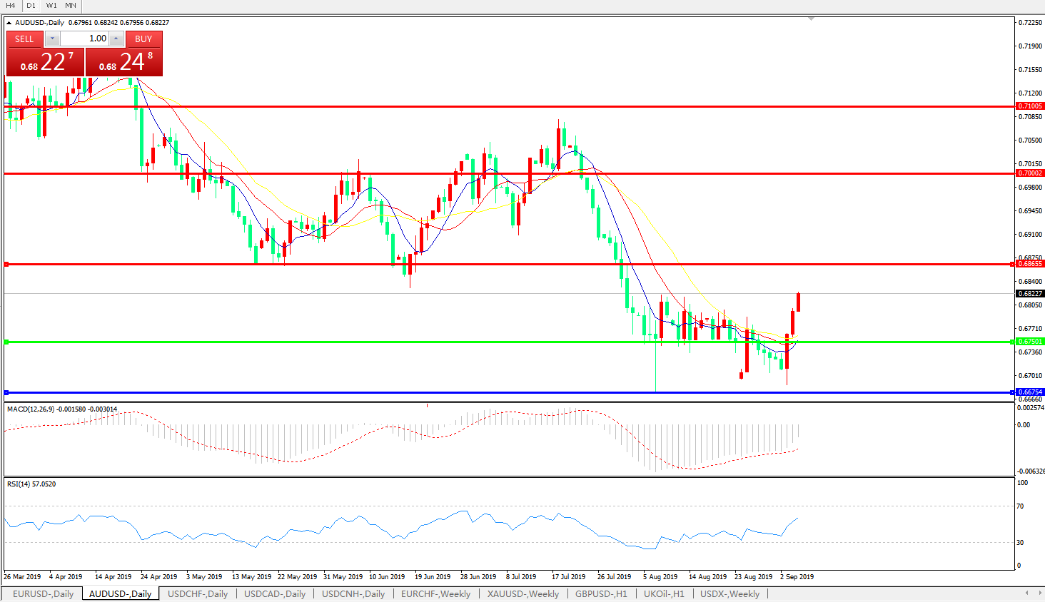 澳元兑美元AUDUSD    日线图:
