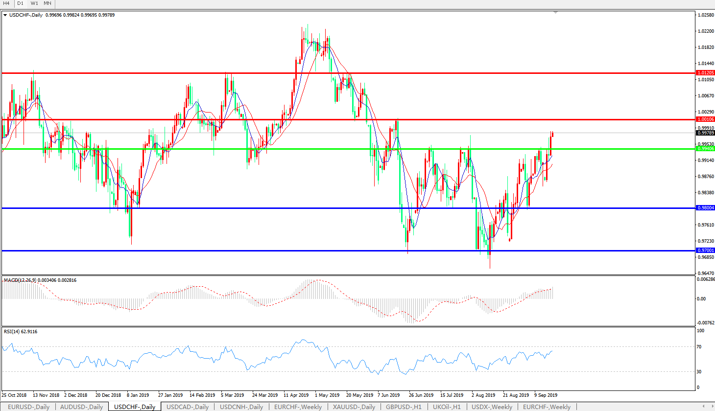 美元瑞郎USDCHF   日线图: