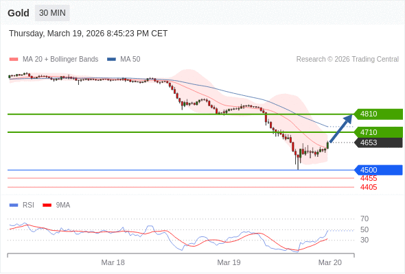 在 4500 之上,看涨,目标价位为 4710 ,然后为 4810 。