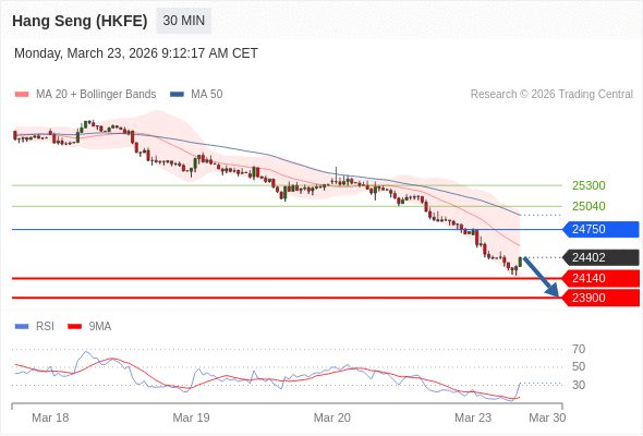 香港恒生指数期货 当日内: 短期关键阻力位在24750。