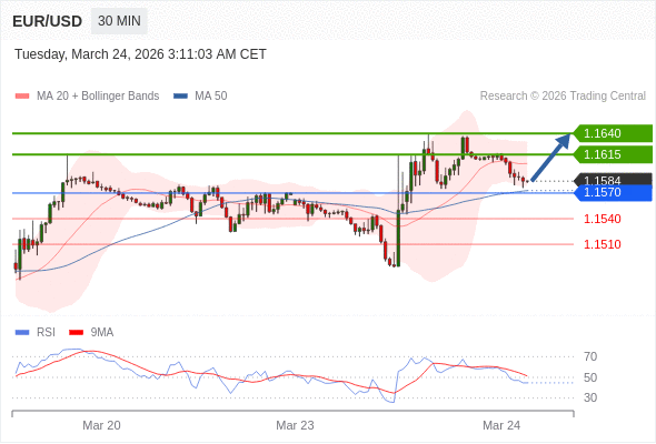 在 1.1570 之上,看涨,目标价位为 1.1615 ,然后为 1.1640 。