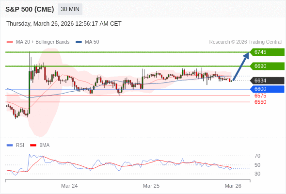 在 6600 之上,看涨,目标价位为 6690 ,然后为 6745 。