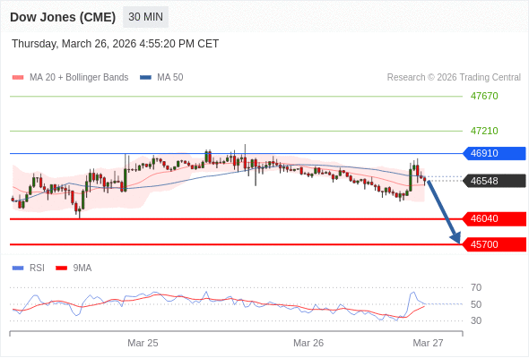 在 46910 之下,看跌,目标价位为 46040 ,然后为 45700 。