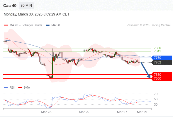 在 7760 之下,看跌,目标价位为 7550 ,然后为 7500 。
