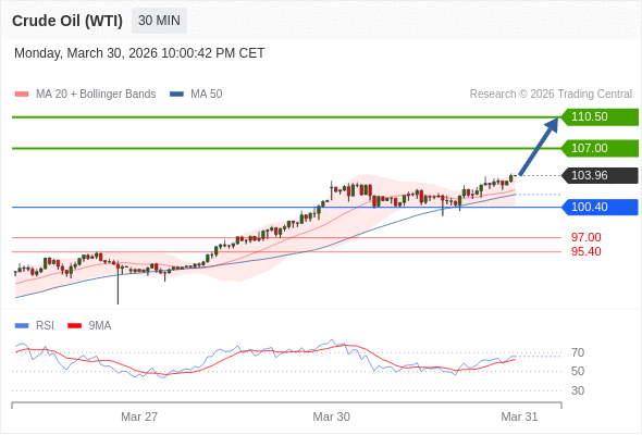 在 100.40 之上,看涨,目标价位为 107.00 ,然后为 110.50 。