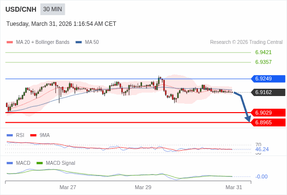 交易策略: 看跌,在 6.9249 之下。