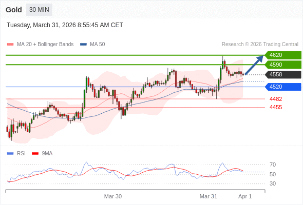 在 4520 之上,看涨,目标价位为 4590 ,然后为 4620 。