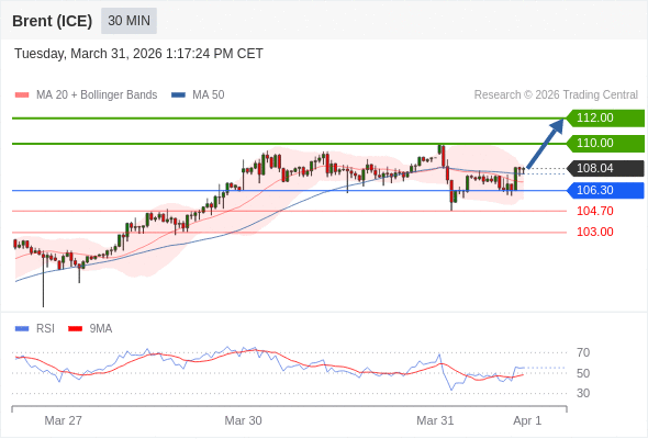 在 106.30 之上,看涨,目标价位为 110.00 ,然后为 112.00 。