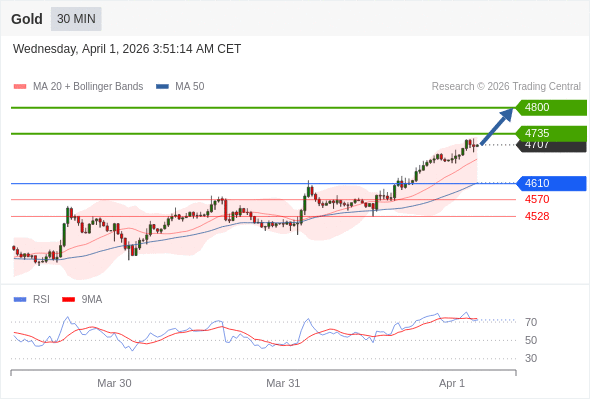 在 4610 之上,看涨,目标价位为 4735 ,然后为 4800 。