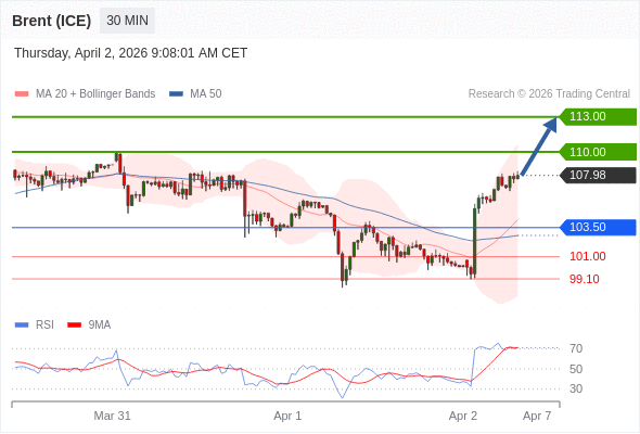 在 103.50 之上,看涨,目标价位为 110.00 ,然后为 113.00 。