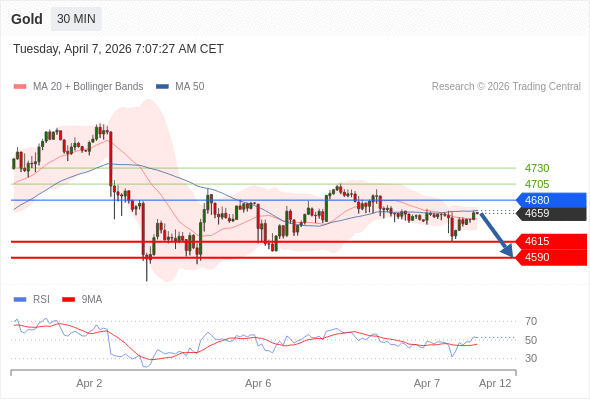 在 4680 之下,看跌,目标价位为 4615 ,然后为 4590 。