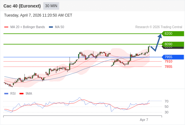 在 7955 之上,看涨,目标价位为 8090 ,然后为 8200 。