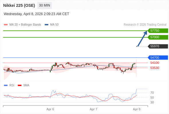 在 54700 之上,看涨,目标价位为 57000 ,然后为 57750 。