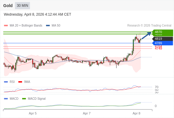 Gold 当日内: 看涨,当 4789 为支撑位。