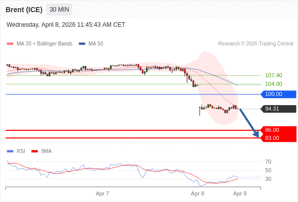交易策略: 在 100.00 之下,看跌,目标价位为 86.00 ,然后为 83.00 。