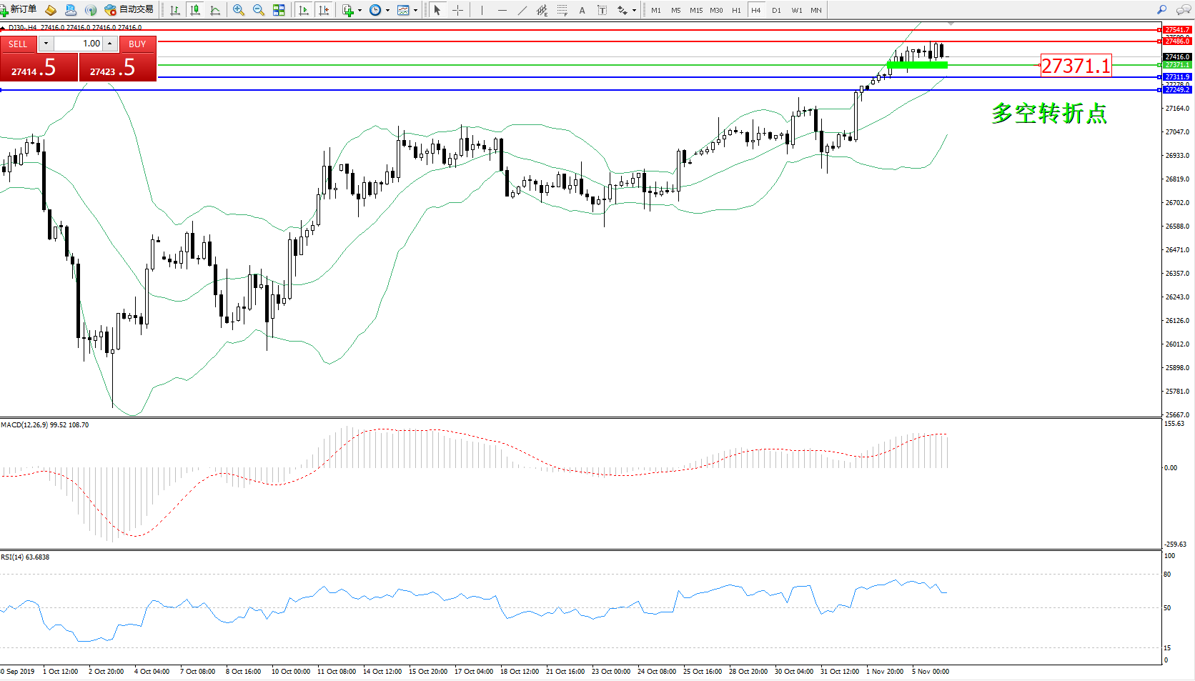 技术点评:多头高位维持震荡上行后有平缓走势迹象,处于布林带指标中上轨区间整理,多头有上行动力有所减缓,且布林带指标呈收口走势中,MACD指标多头区域高位弱势整理平移,RSI指标处于多头区域震荡后有回撤下移迹象;