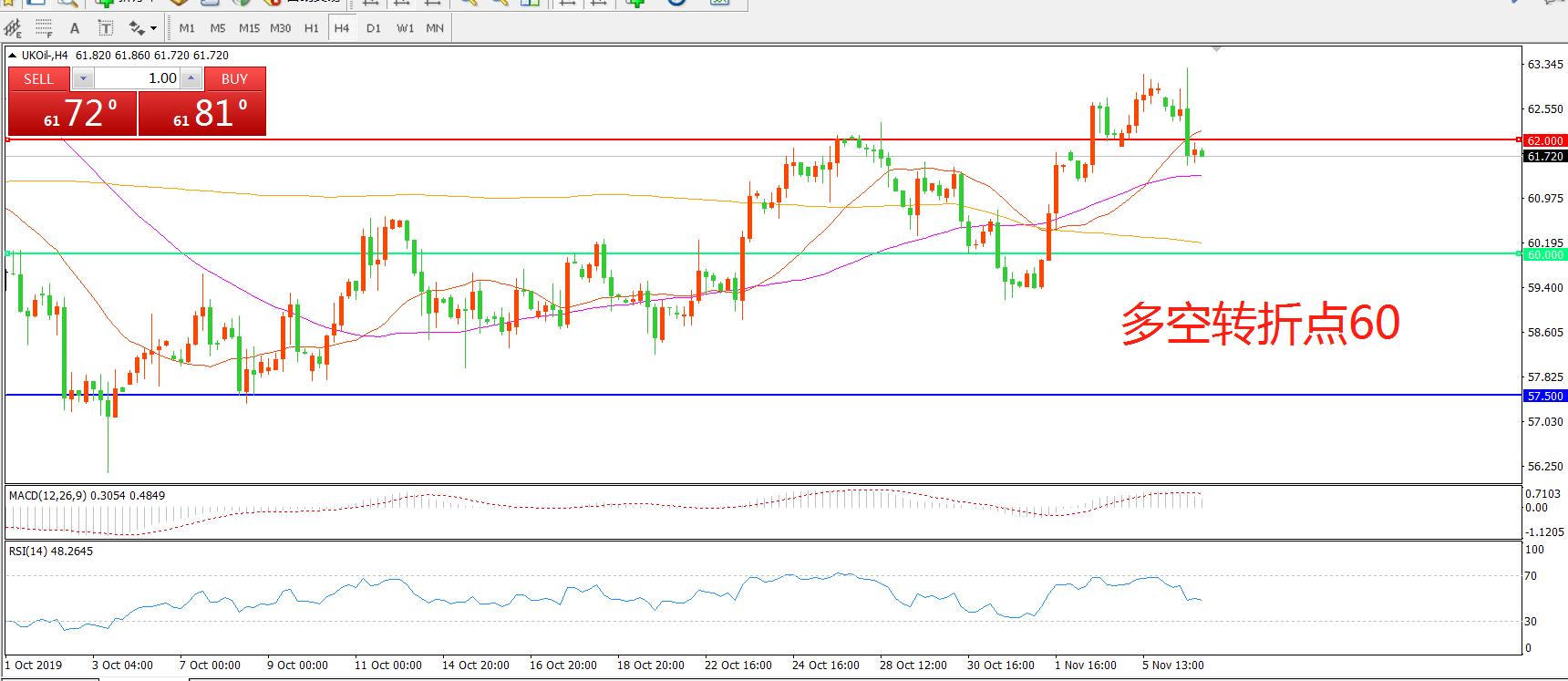 多空转折点:60.00