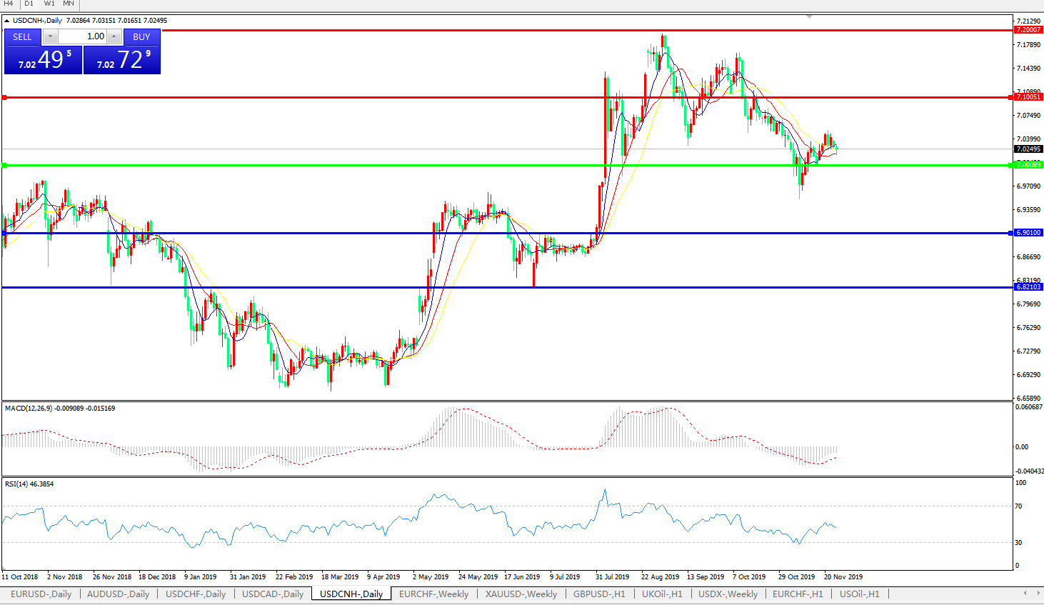 交易策略: 在7.0000之上,看涨,目标价位为7.1000,然后为7.2000。