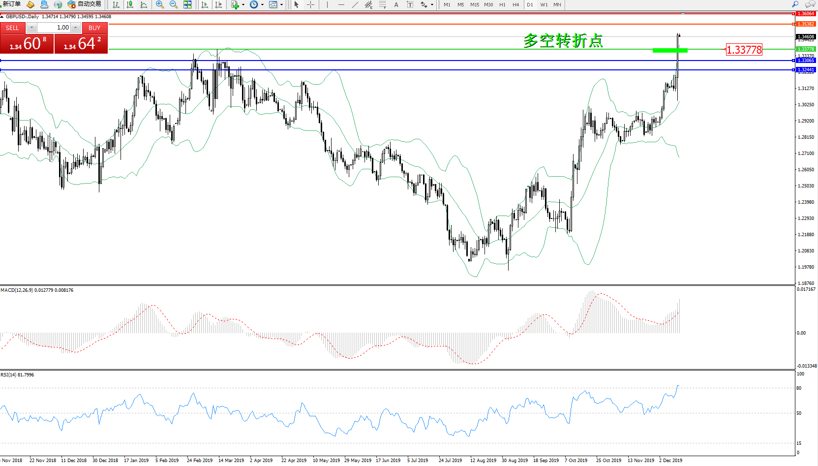 交易策略:1.33778上方看涨,目标1.353821.36064