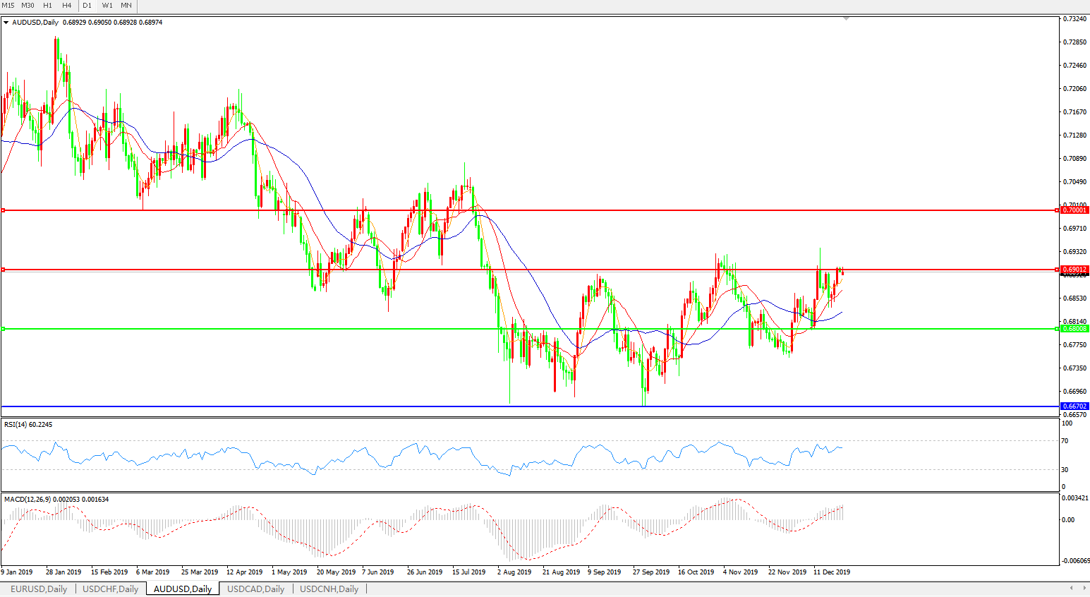 交易策略:0.6800上方看涨,目标0.6900、0.7000