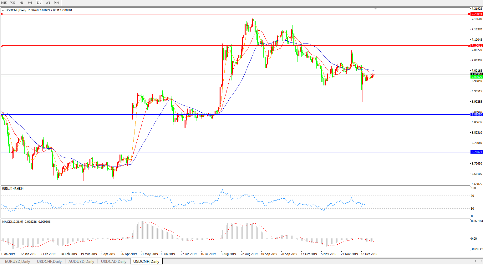美元兑人民币USDCNH    日线图: