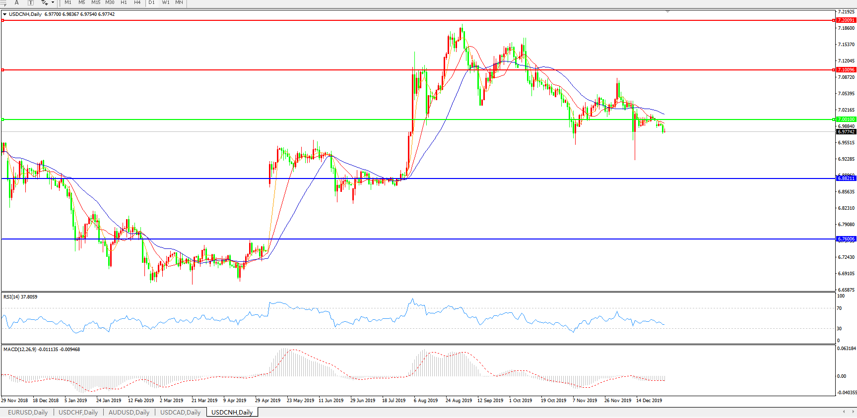 美元兑人民币USDCNH    日线图: