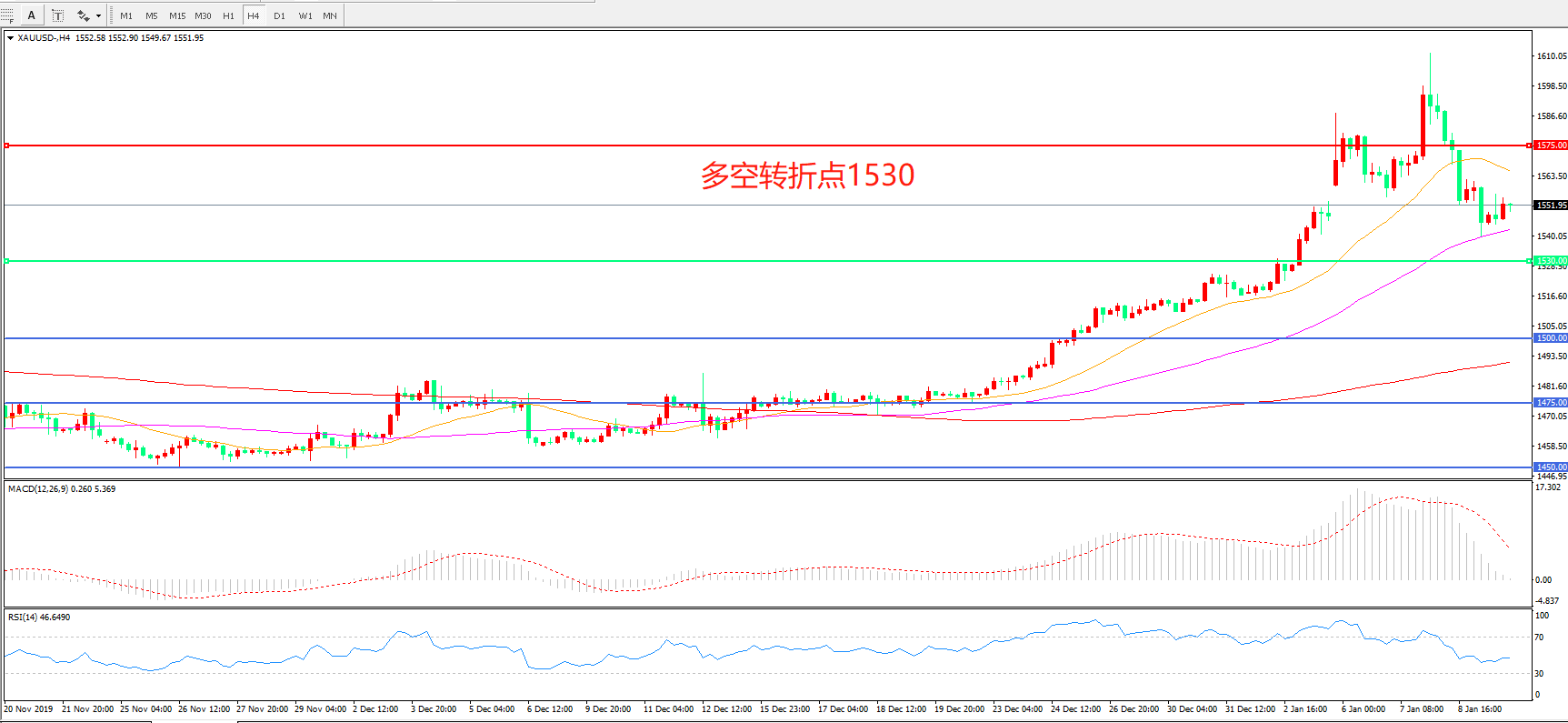 多空转折点:1530.00