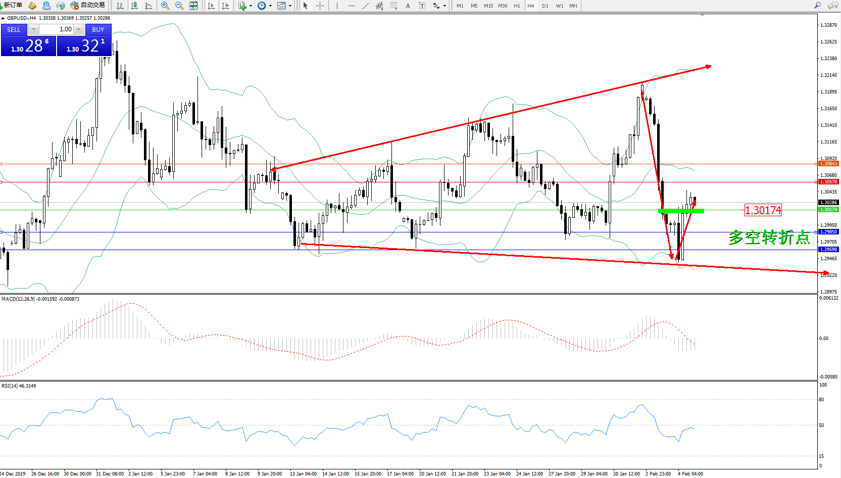 英镑美元GBPUSD ——4小时K线图显示: