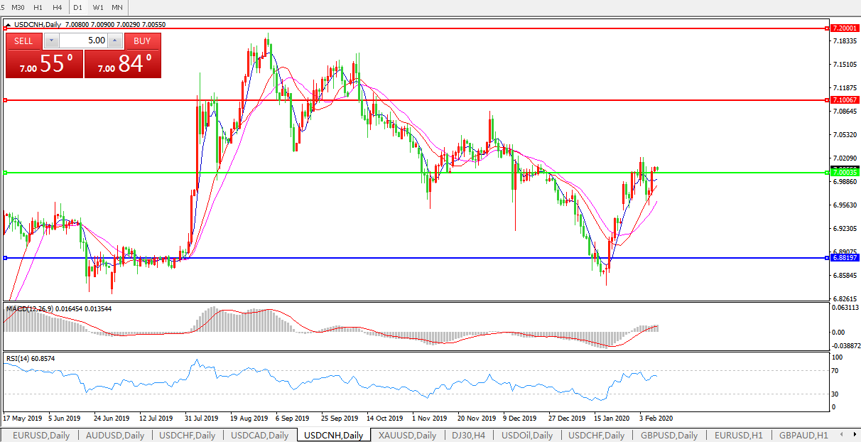 交易策略: 在7.0000之上,看涨,目标价位为7.1000,然后为7.2000。
