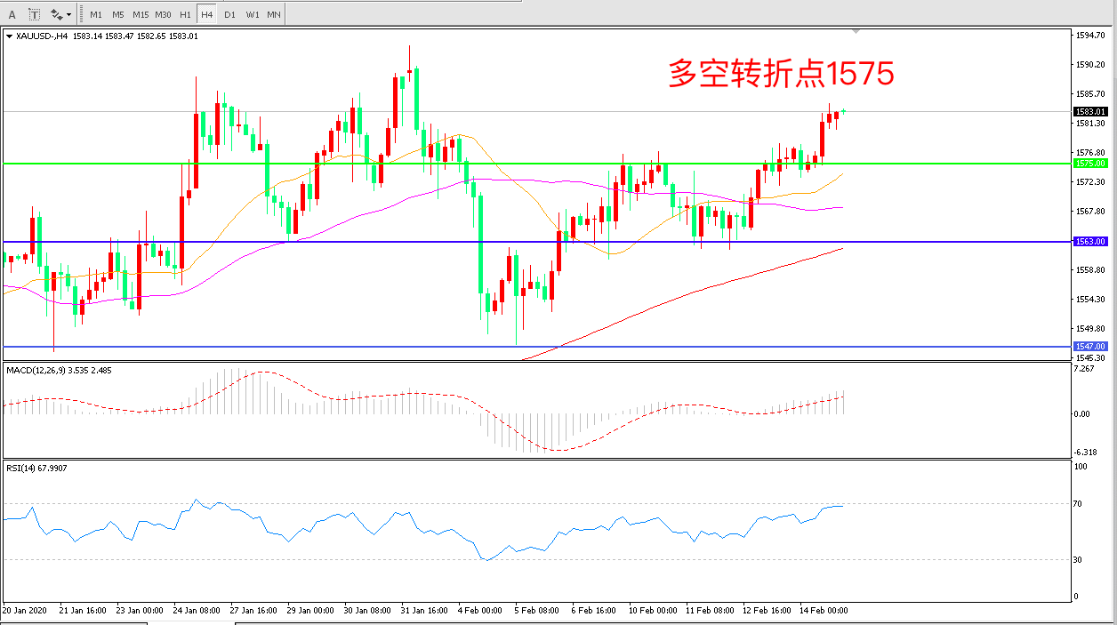 备选策略:在1575.00之下看跌,目标1563.00   1547.00