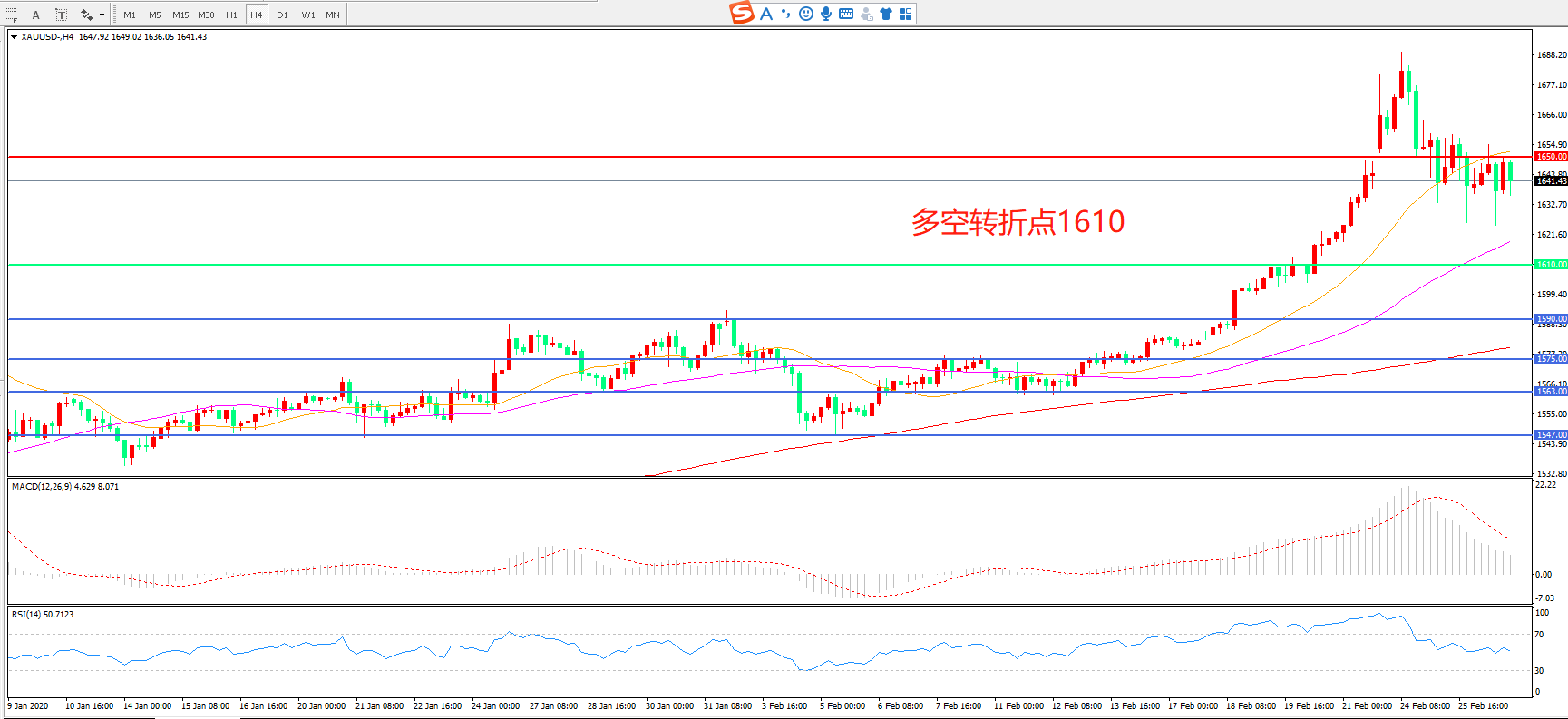 备选策略:在1610.00之下看跌,目标1650.00   1700.00