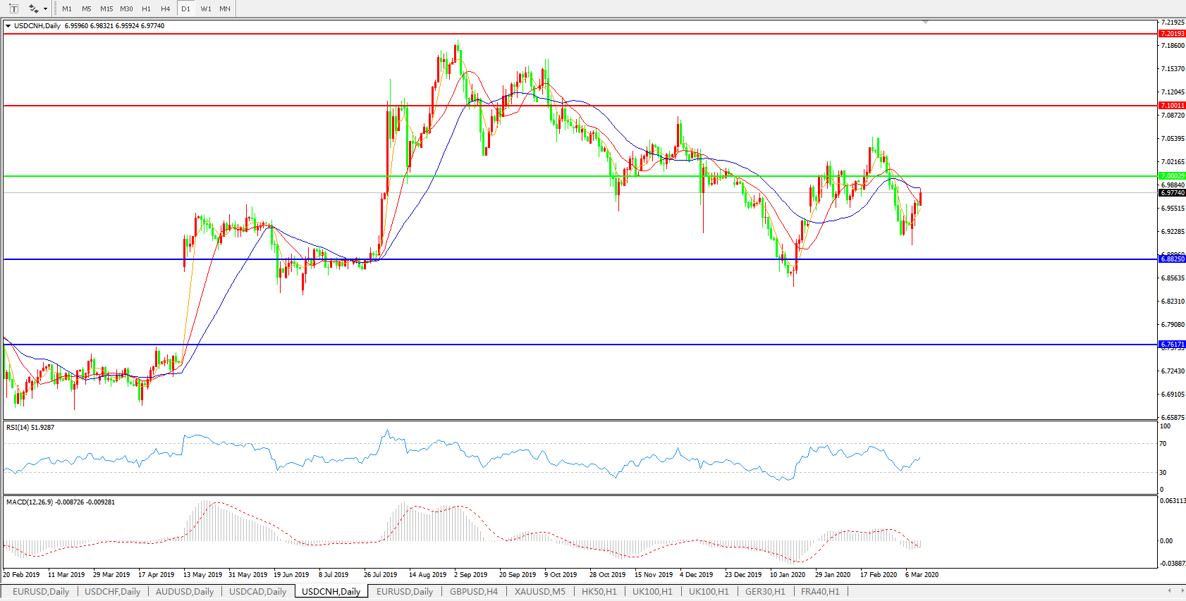 美元兑人民币USDCNH    日线图: