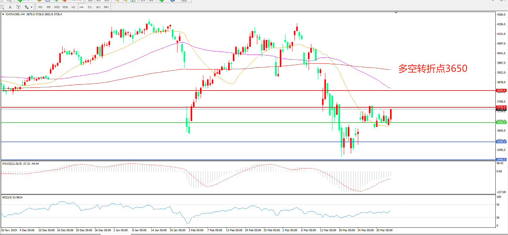 沪深300  CHINA 300   4小时图
