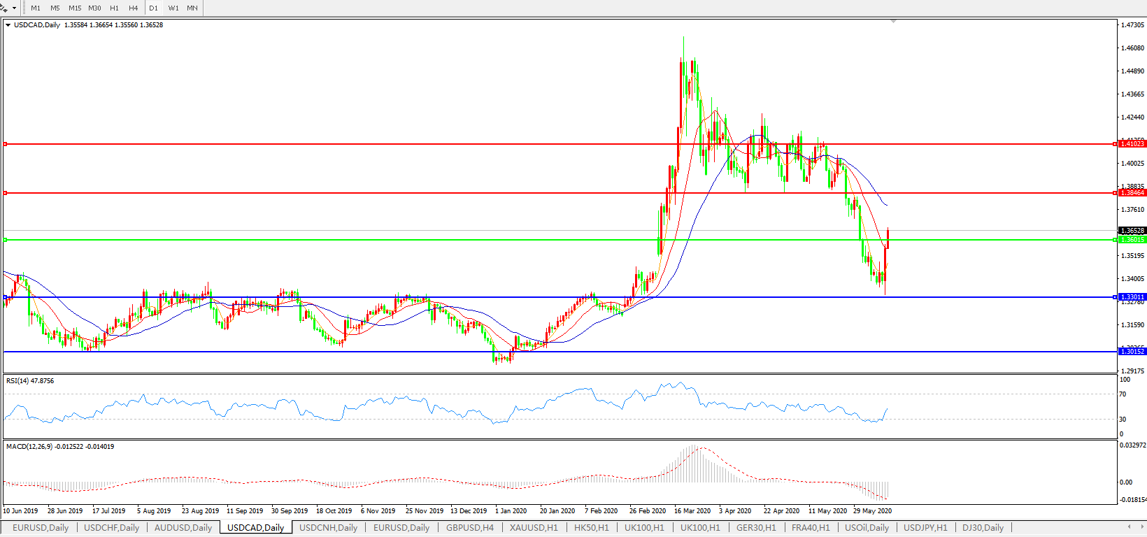 美元兑加元USDCAD    日线图:
