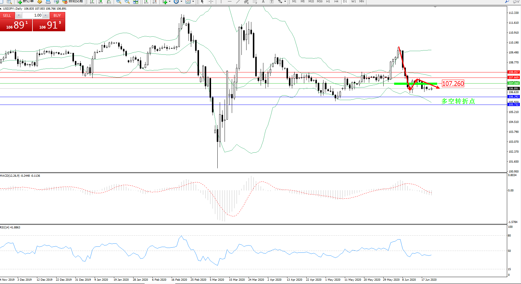 多空转折点:107.260