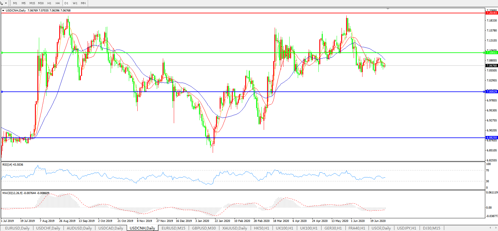 交易策略: 在7.1000之下,看跌,目标价位为7.0000,然后为6.8820。