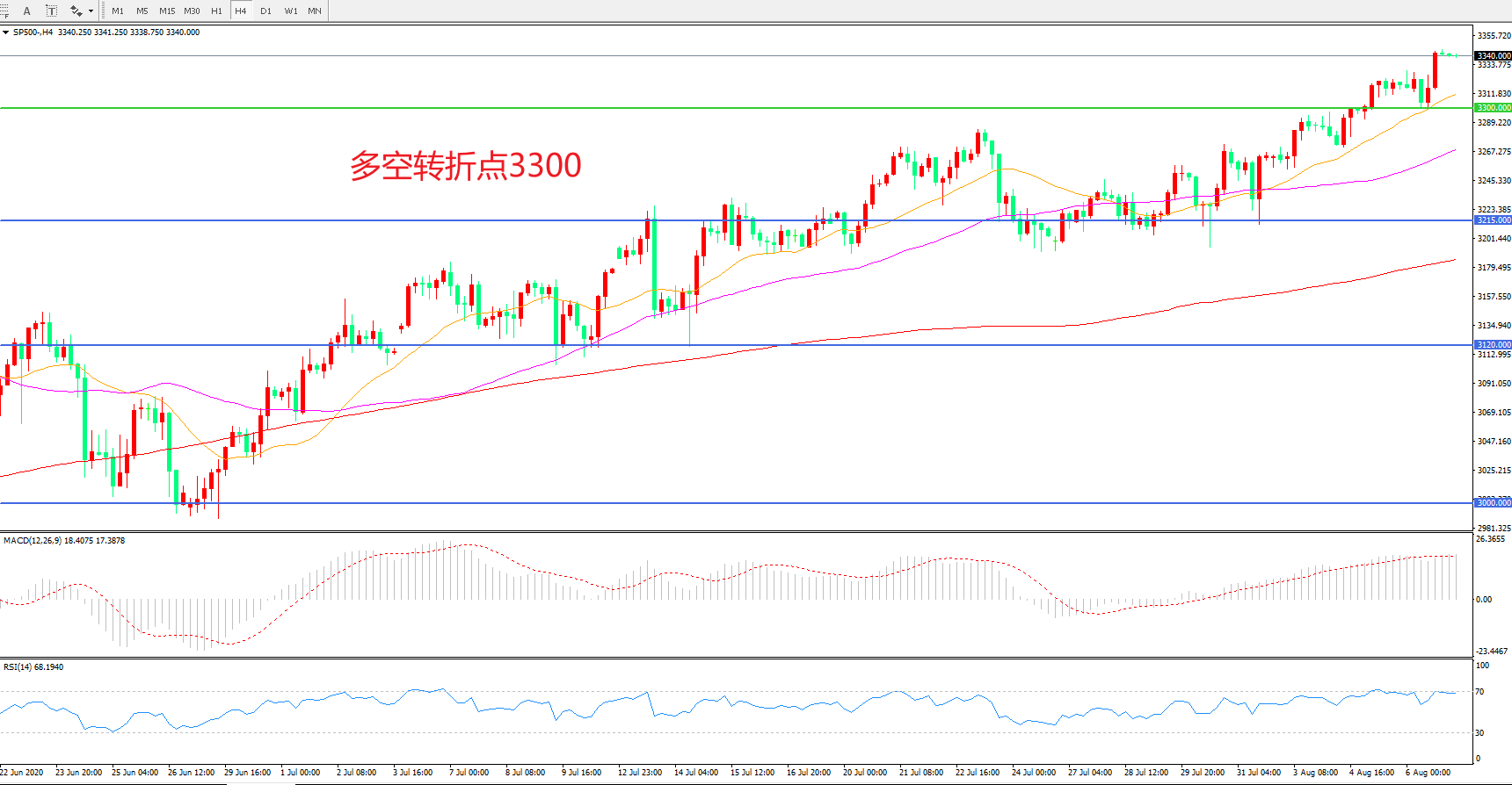 多空转折点:3300.00