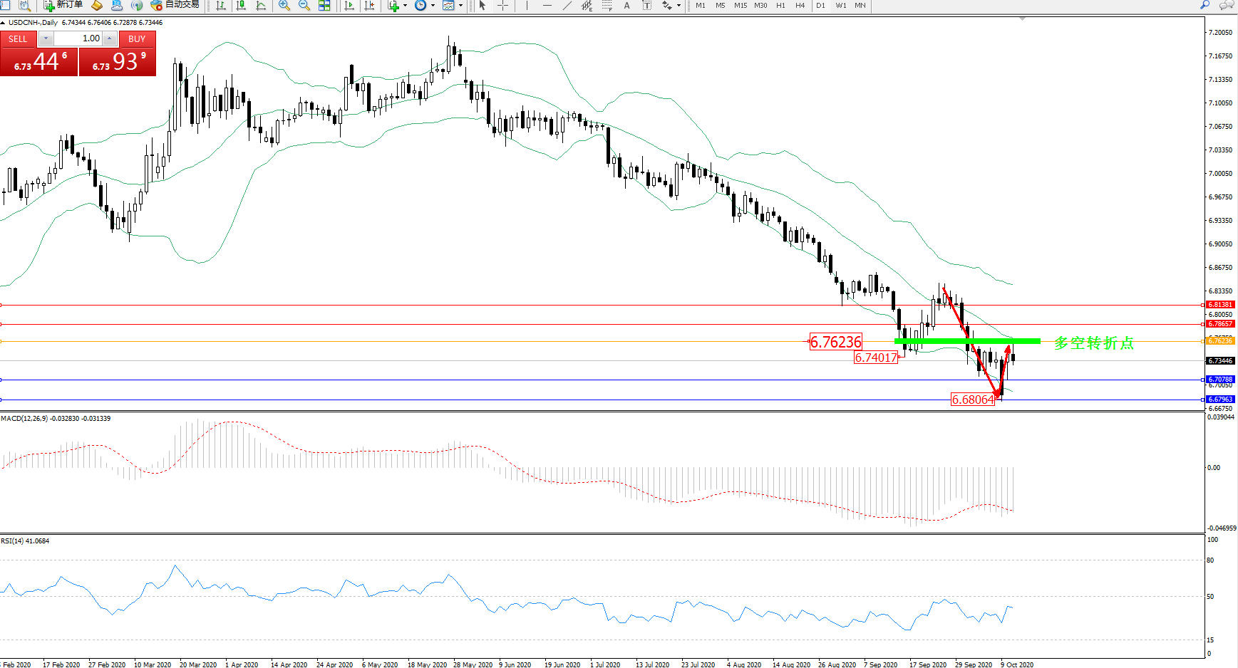 美元人民币USDCNH——日K线图显示: