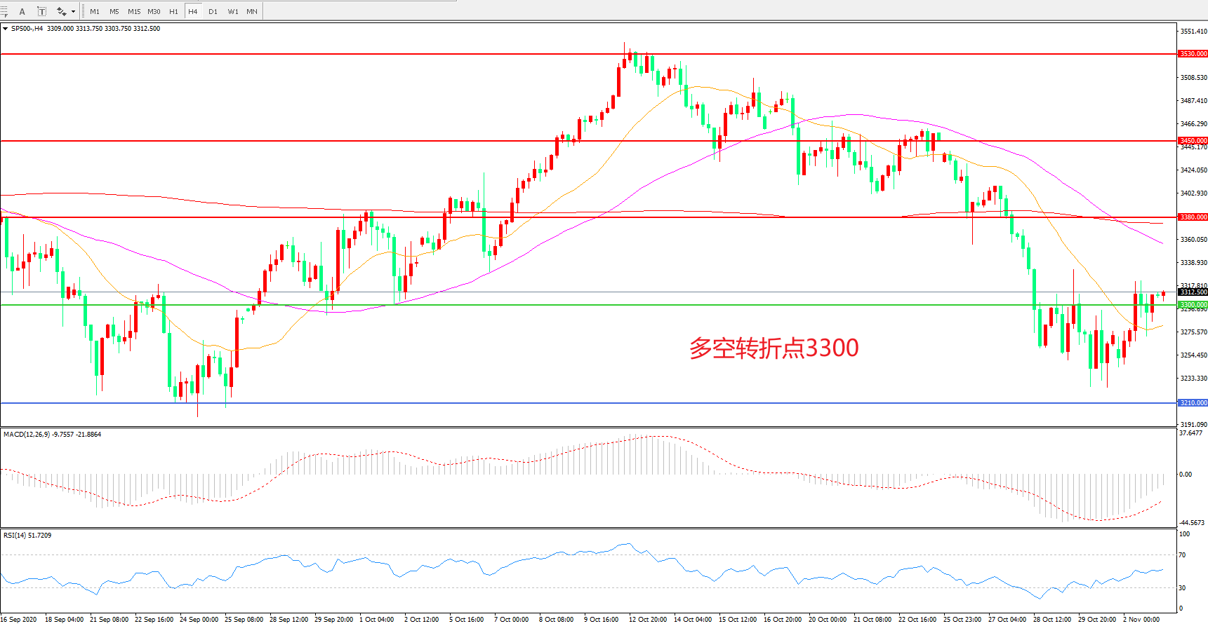 多空转折点:3300.00