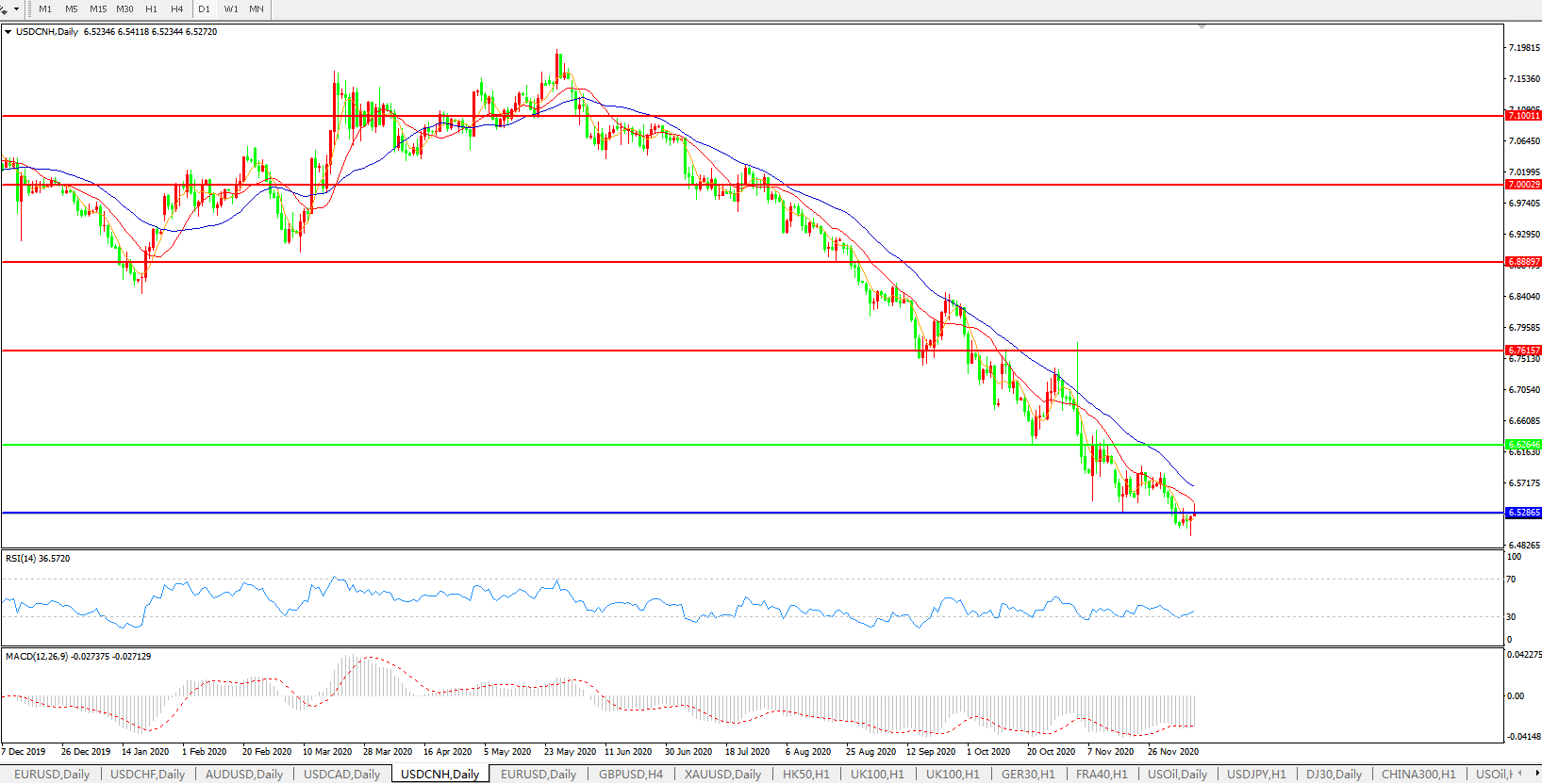 美元兑人民币USDCNH    日线图: