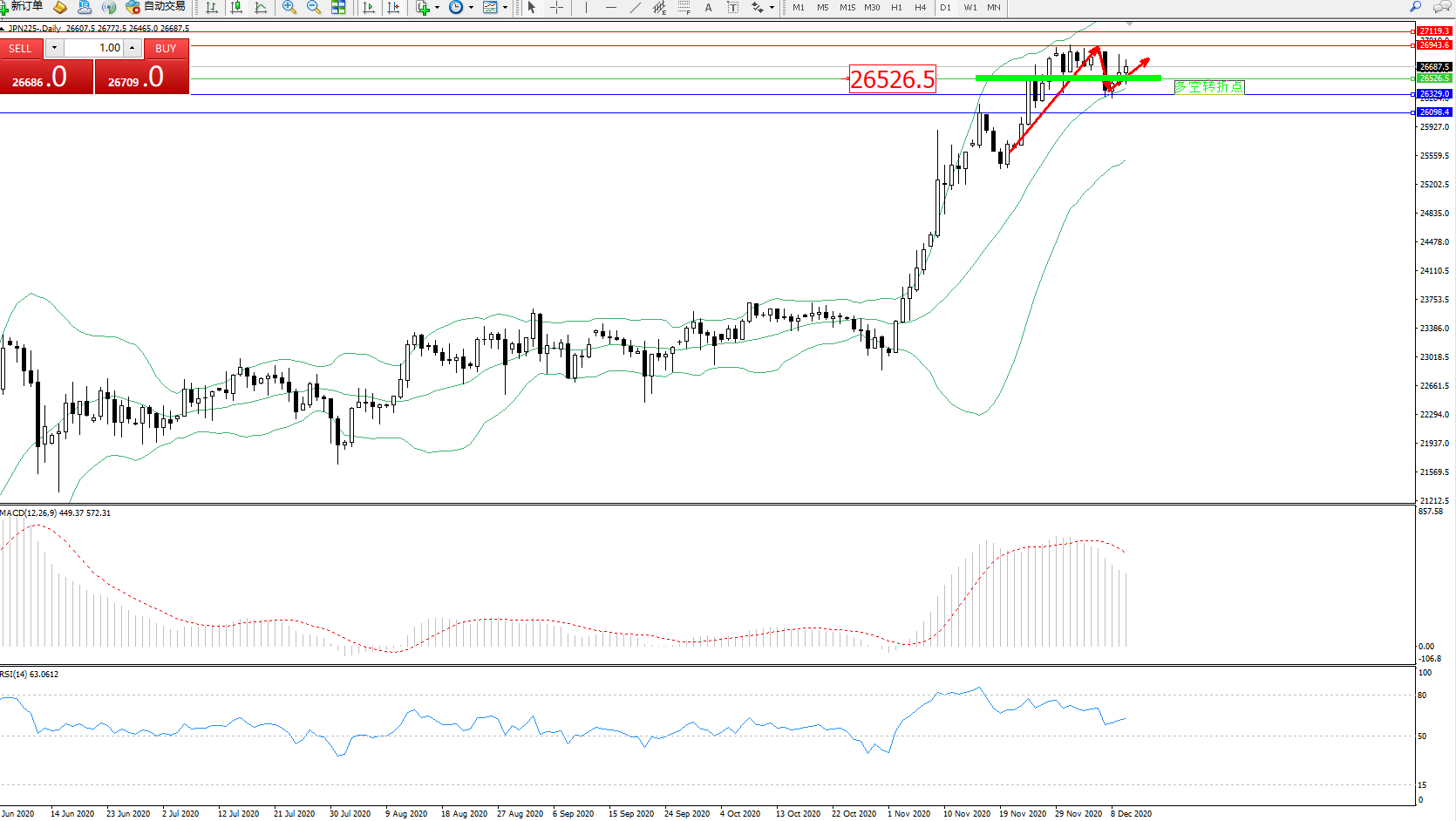 交易策略:26526上方看涨,目标26943、27119