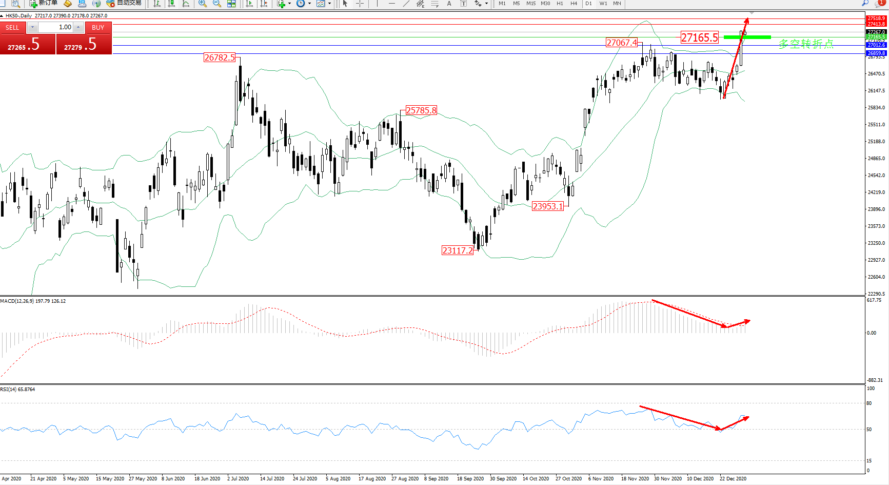 因元旦假期,港股下午休市。港股2020年行情截至目前正式收官!恒指延续近期强势,本周累计上涨3.2%,恒指2020年累跌3.31%,大幅震荡逾8000点。恒生科技指数涨1.57%。美团涨2.36%,年内累计上涨189%;阿里巴巴跌1.5%,年内累计上涨12.2%;腾讯涨0.8%,年内累计上涨50.6%。当前港股市场对资金的吸引力已开始体现,明年伴随基本面向好,“新经济”投资标的增加,港股估值仍有抬升空间。随着各种因素有缓和迹象,港股明年盈利将有15%左右的恢复性增长,但估值进一步扩张的空间不大。港股全年大致呈前高后低的M型走势,恒生指数全年波动区间在23500点至29500点,面对疫情冲击下传媒板块线上线下分化的行情,主要围绕业绩拐点、估值修复、顺周期增长来布局。