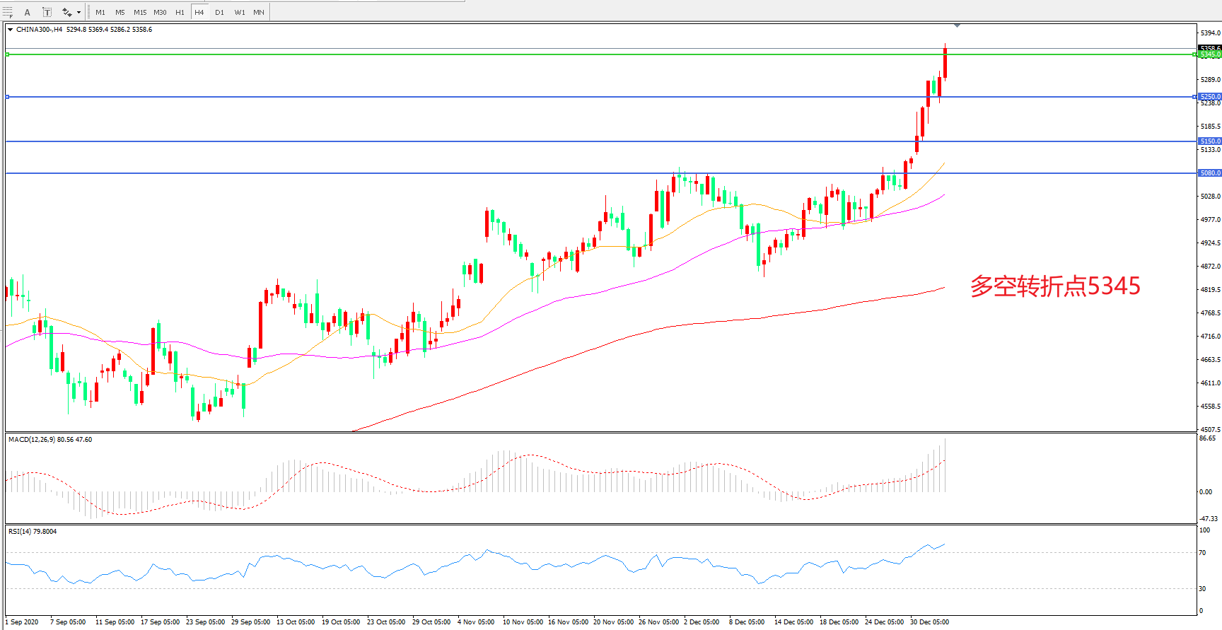 多空转折点:5345.00