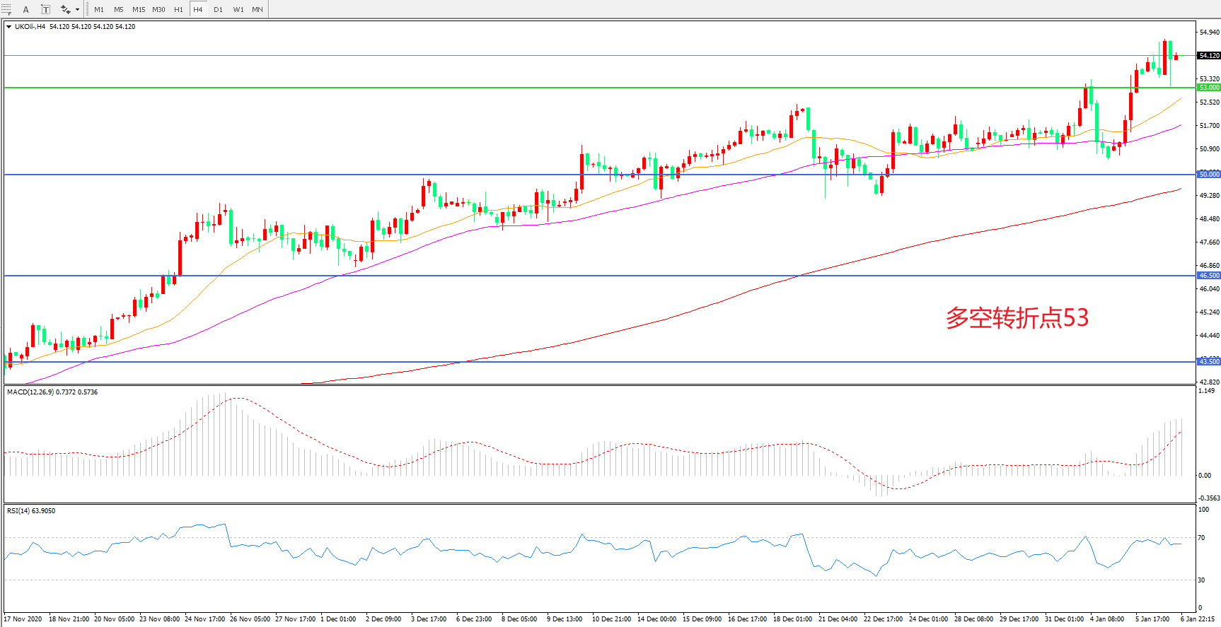 多空转折点:53.00